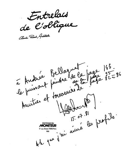 Profils Retour Accueil La familiarité de Bellaguet avec l'architecture n'a pas à proprement parler "influencé" son travail, mais en a défini le cadre, le conditionnement, la nécessité. il est évident qu'une certaine façon de vivre, la fonction oblique" de Claude Parent, a donné à son art une nature particulière: l'œuvre de chevalet se dissout au profit d'un agencement de l'espace, d'une mise en place de cadences et de couleurs fondées sur le décollement du mur.